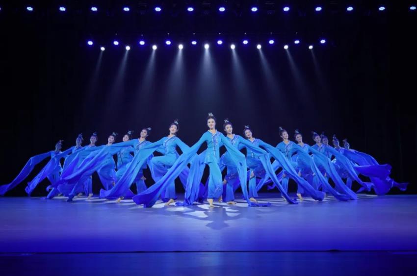 Students from SDU, clad in blue dance costumes, deliver a brilliant performance on stage. [Photo/Shandong University]