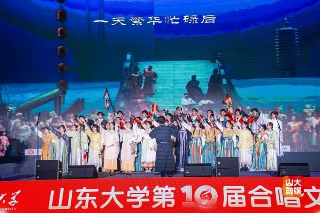 Students perform during the choral culture festival. [Photo/Shandong University]