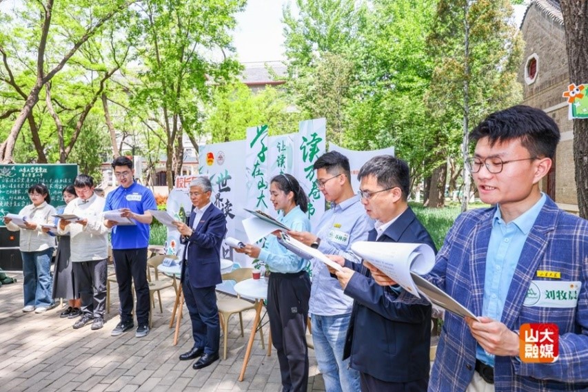 In celebration of the 30th World Book and Copyright Day, Shandong University organized a "Reading Together with the President" event at its Baotuquan Campus on April 23. President of Shandong University Li Shucai attended the event, engaging in reading classic books with faculty members and students.