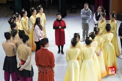 Li Ling (center), President of the China-Europe Association for Humanistic Exchanges, offers guidance for a performance by the faculty and students of the Department of Dance at Shandong University. [Photo/Shandong University]