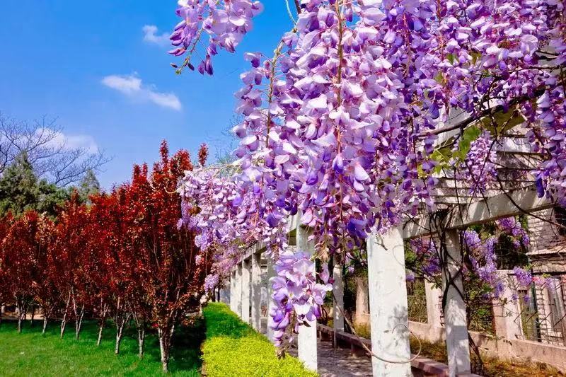 A photo shows the enchanting sight of blooming wisteria flowers at Shandong University. [Photo/sdu.edu.cn]
