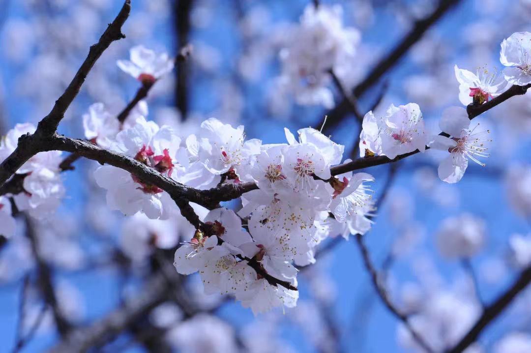 A photo shows blooming apricot flowers. [Photo/sdu.edu.cn]