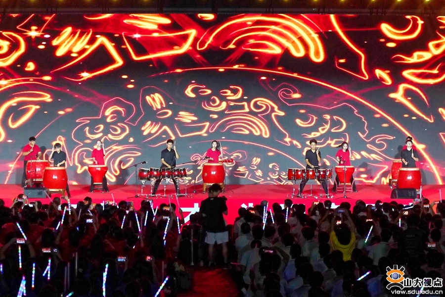The Dongyue percussion band from Shandong University delivers a performance conveying the new students' excitement for university life. [Photo/view.sdu.edu.cn]