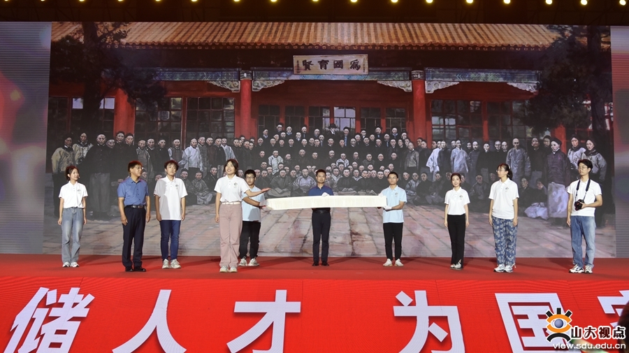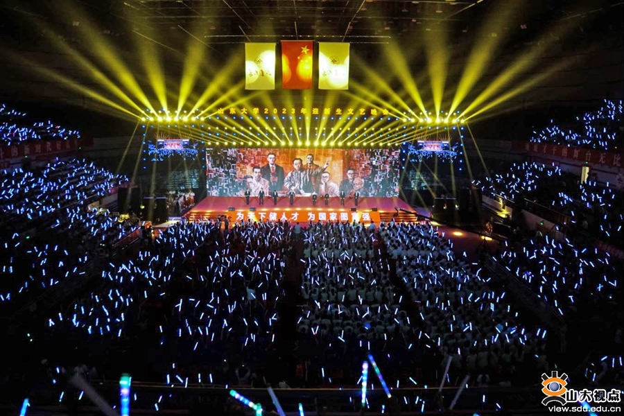 Shandong University held the "Youth Ignites the Dream of a Strong Country" 2023 art evening to welcome freshmen on Sept 21. Li Shucai, president of Shandong University, Lu Yanhua, the university's vice-president, and all freshmen of the 2023 class attended the event.