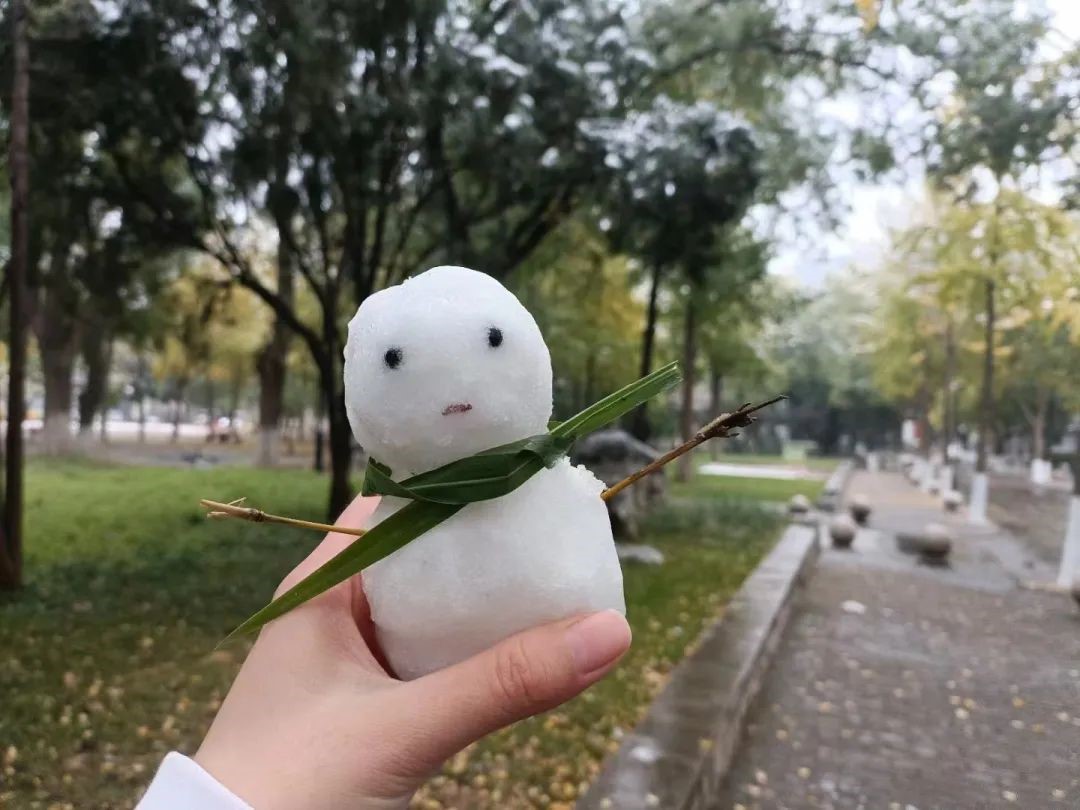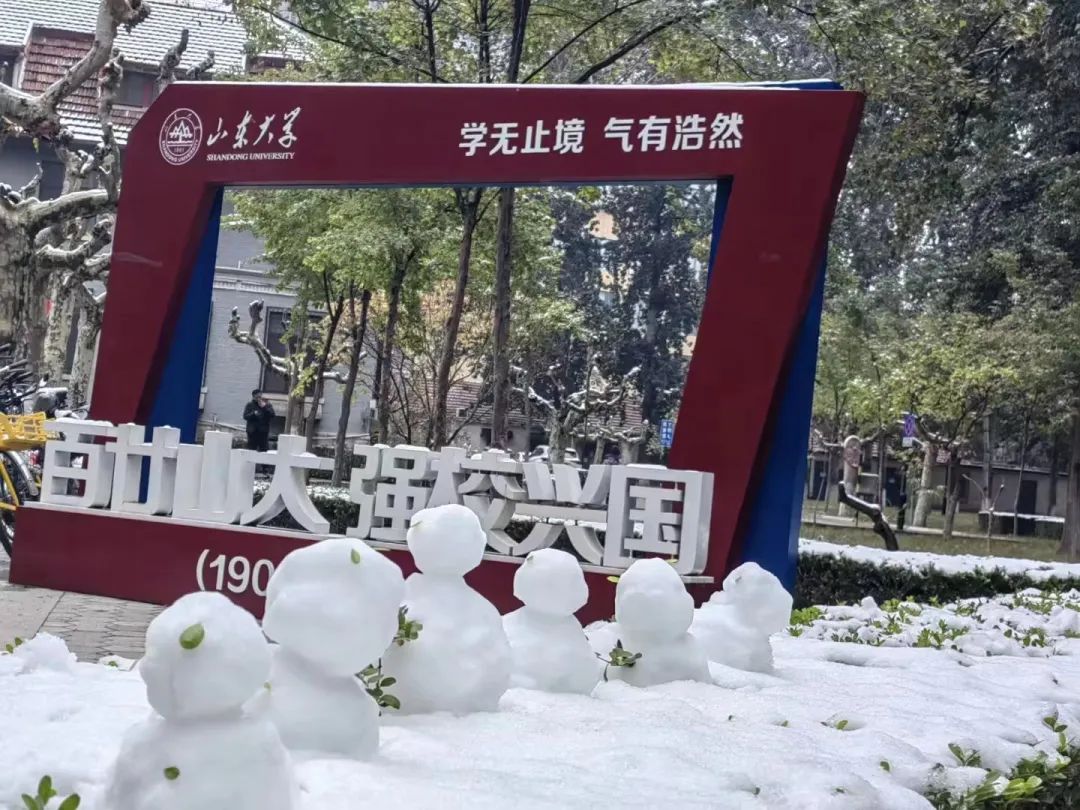 A snowman adorns the campus of Shandong University. [Photo/view.sdu.edu.cn]