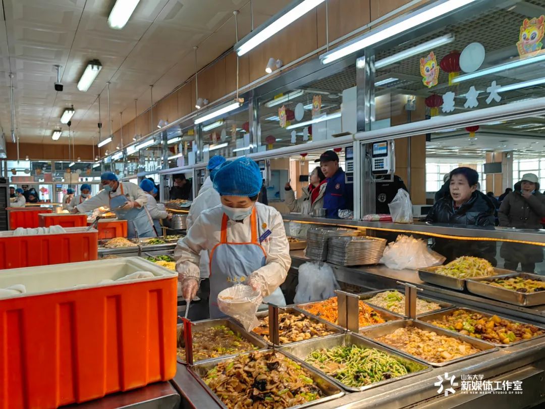 A staff member serves food to students at SDU during the Spring Festival period. [Photo/sdu.edu.cn]
