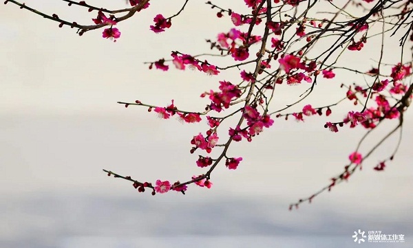 Red plum blossoms bloom abundantly on the long branches in the spring, adorning Shandong University's campus with bright color. [Photo/WeChat account: sdu-1901]