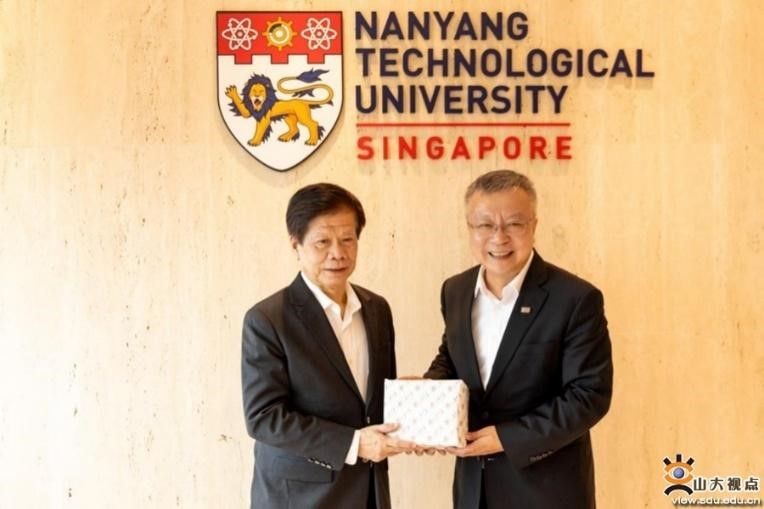 Ren Youqun (right), Party secretary of Shandong University, poses for a photo with Lam Khin Yong, vice-president of the Nanyang Technological University. [Photo/Shandong University]