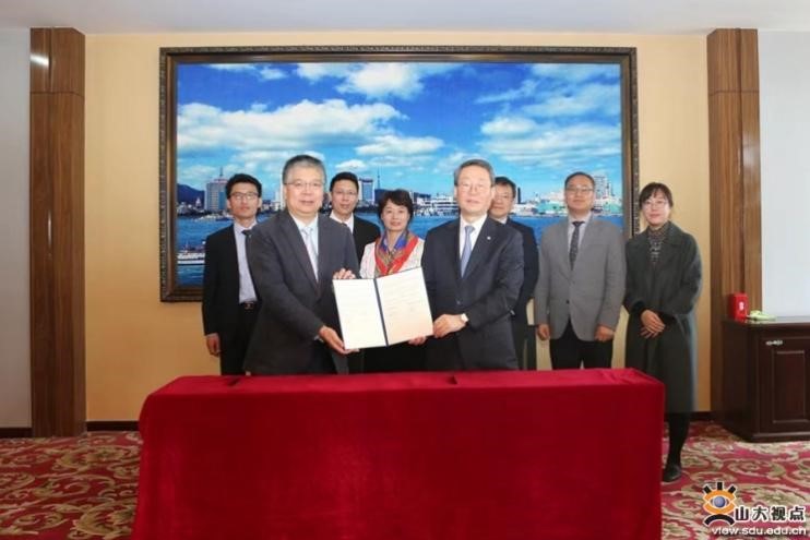 Shandong University signs a cooperation agreement with Hanyang University in South Korea. [Photo/Shandong University]
