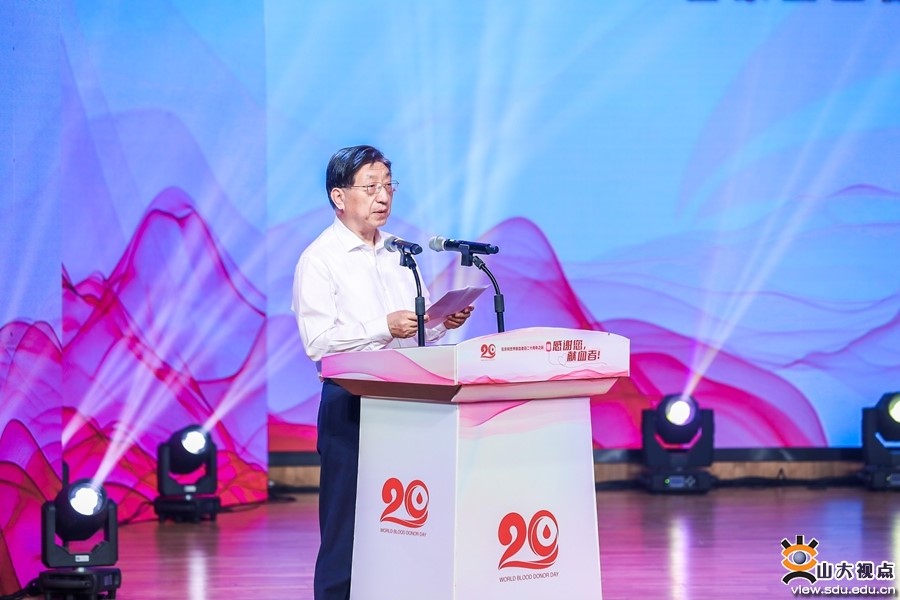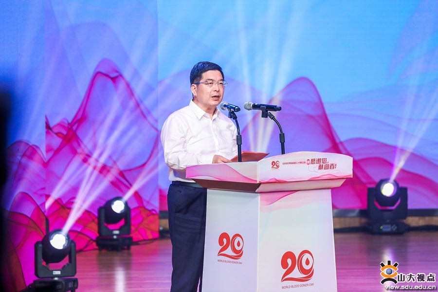 Ren Youqun, Party secretary of Shandong University, delivers a keynote speech at the National Event for World Blood Donor Day 2024 on June 14. [Photo/Shandong University]