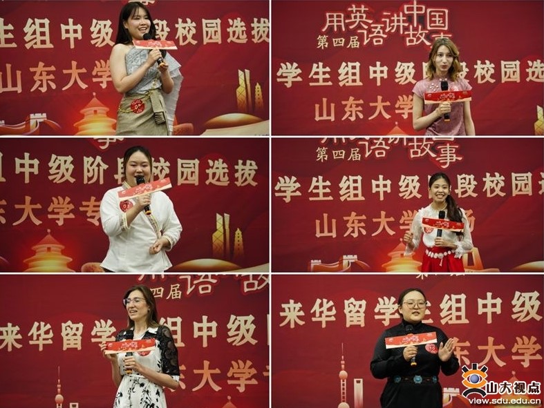 Four candidates qualified for the next stage of the competition in the domestic foreign student category of the fourth "Stories of China Retold in English" Challenge, which was held at Shandong University on May 16.