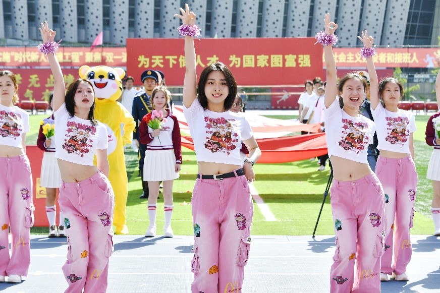 Students perform an aerobics routine at the opening ceremony of the 2024 Shandong University Track Competition. [Photo/sdu.edu.cn]