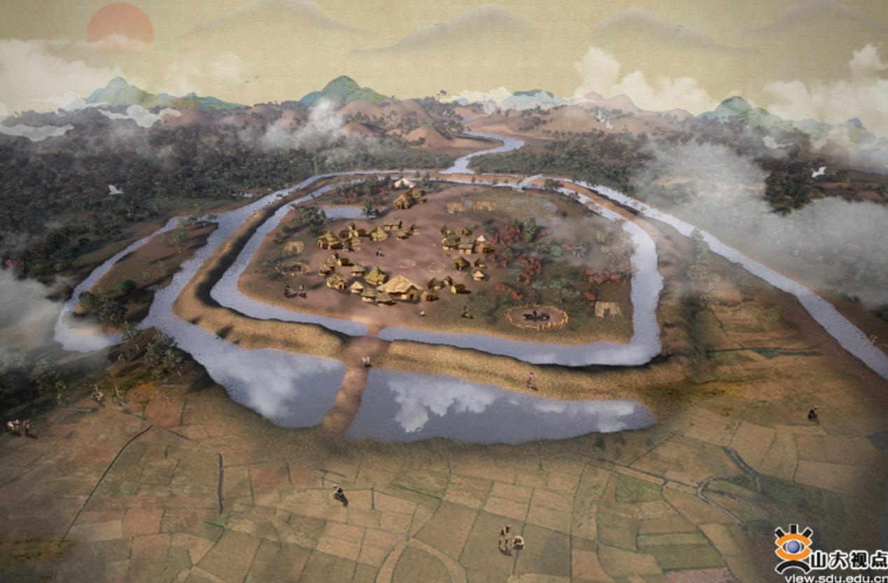 A rendering of the Qianzhongzitou site, a collection of ancient settlement ruins in Gaomi, Weifang. [Photo/sdu.edu.cn]