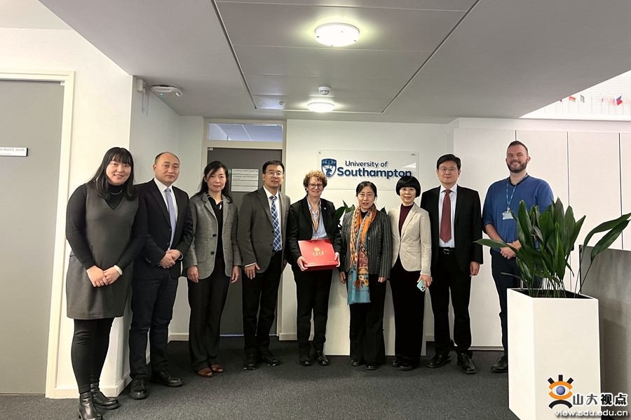The Shandong University delegation and representatives of the University of Southampton pose for a group photo. [Photo/sdu.edu.cn]