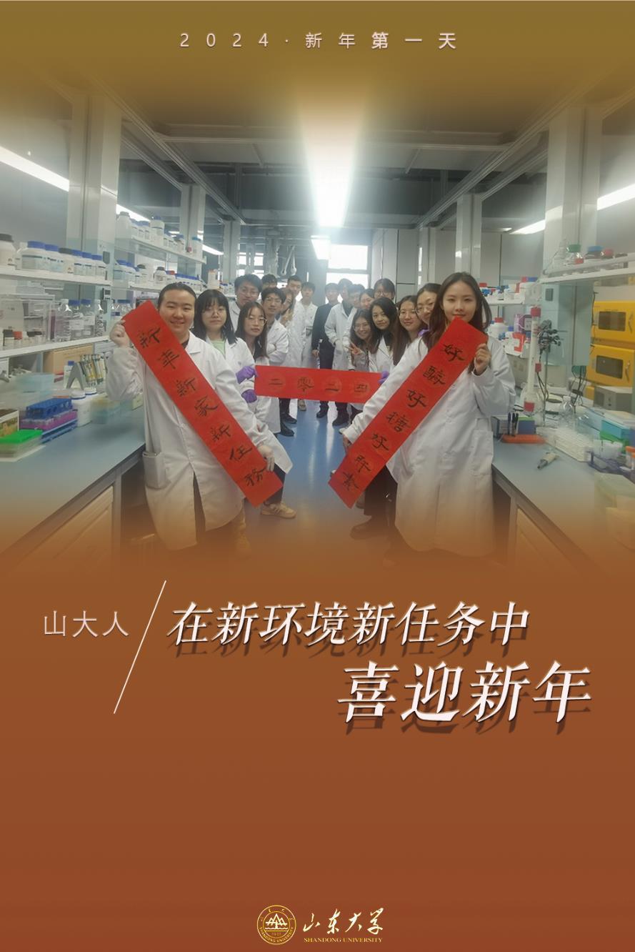 Teachers and students of the Institute of Biochemical and Biotechnological Drugs of the School of Pharmaceutical Sciences of Shandong University, pose for a photo in the lab on the first working day of the new year. The team has focused on the research and development of glycosaminoglycan biosynthesis and drugs. [Photo/sdu.edu.cn]