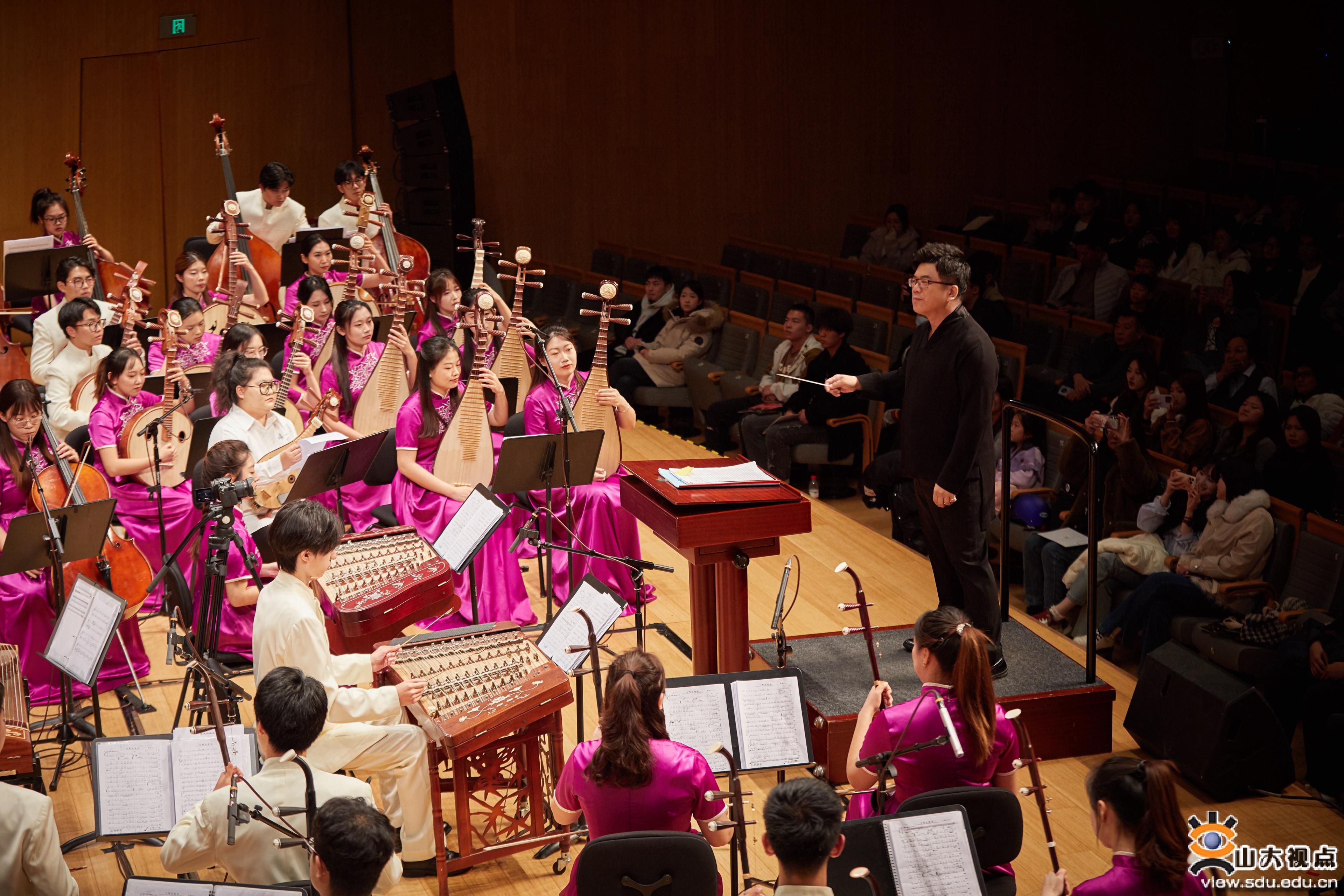 The Shandong University Chinese Orchestra held concerts on Chinese folk music at the university's central campus, the Baotuquan campus, and the Shandong Provincial Capital Culture and Art Center Grand Theatre from Nov 8 to 10. The university's president Li Shucai attended the event.