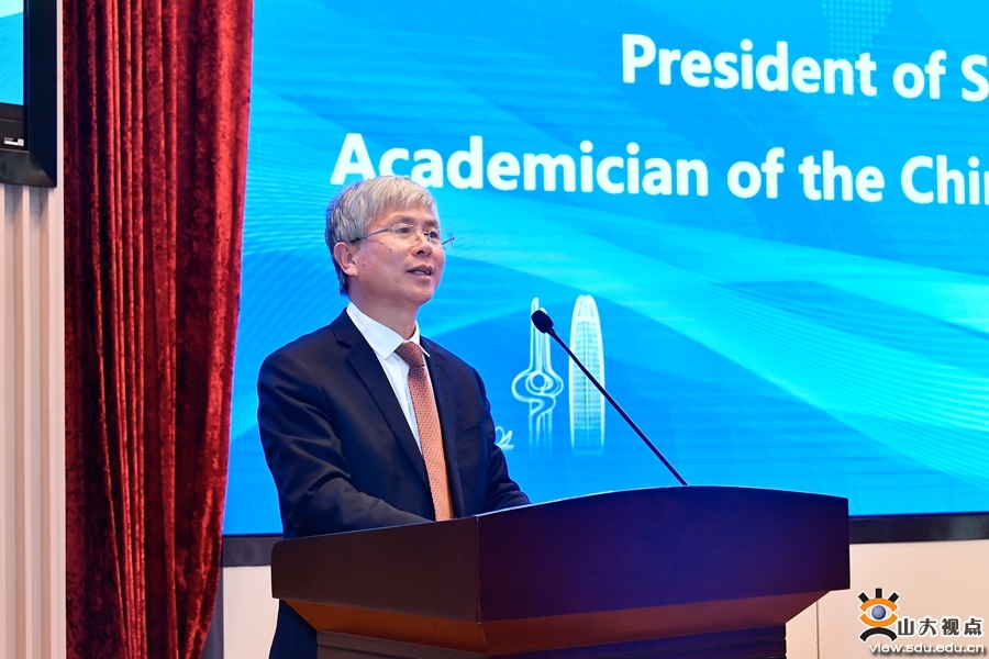 Li Shucai, president of Shandong University delivers a keynote speech at the inaugural meeting. [Photo/sdu.edu.cn]
