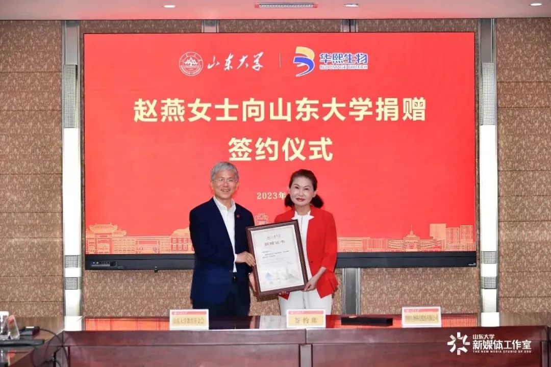 Shandong University President Li Shucai also attended the ceremony and presented a donation certificate to Zhao.